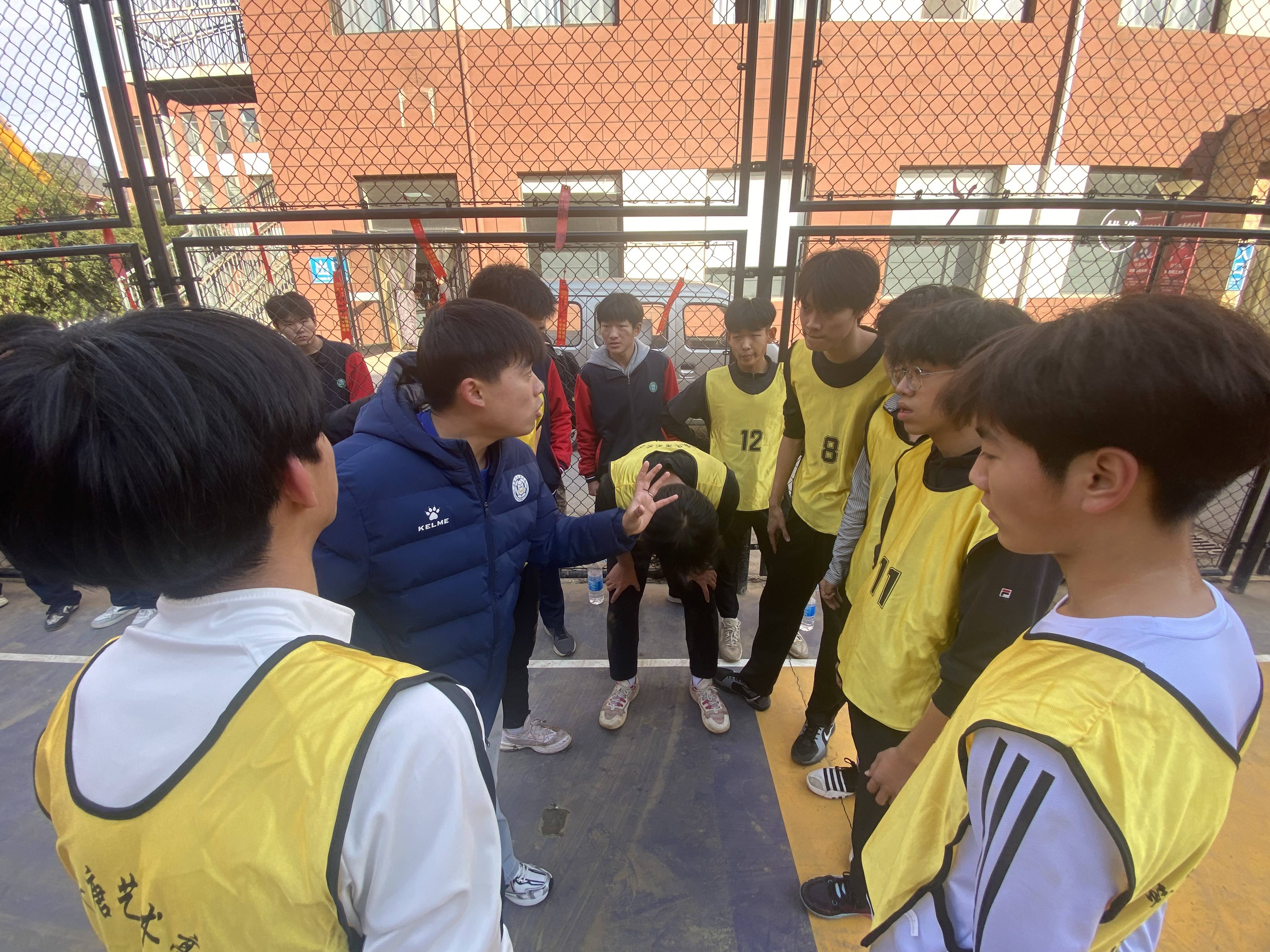 为不耽误同学们的课程学习,赛事组委会精心规划赛程,将大部分比赛时间安排在大课间,让大家在紧张的学习之余,既能释放青春活力,又能享受运动乐趣。篮球友谊赛开幕式后,第一轮后续对决看点十足:11月20日周四下午3:30,高二美1-4代表队将与高一体育一班、高二音传体二队将与高一美术班代表队在两个场地同步开赛;4:30场次,高二美56代表队迎战高一体育二班,高一综合一班与高一综合二班展开同年级巅峰对决,多场较量持续点燃校园运动热潮。值得一提的是,本次赛事特邀体育组孟宪宇、张乐、葛冬冬等老师担任裁判员,以专业公正的执裁保障比赛顺利进行。