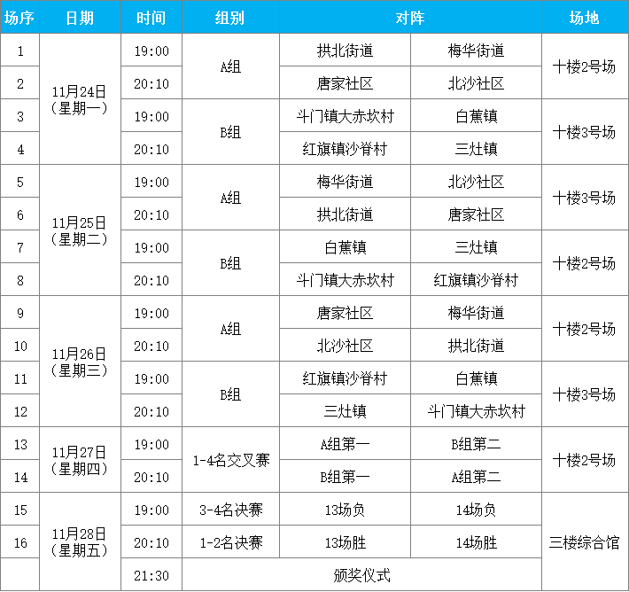11月28日,第一至四名决赛将在全民健身中心三楼综合馆举办。因场地座位有限,市民需凭登记信息限额入场,具体入场办法请留意后续推文通知。