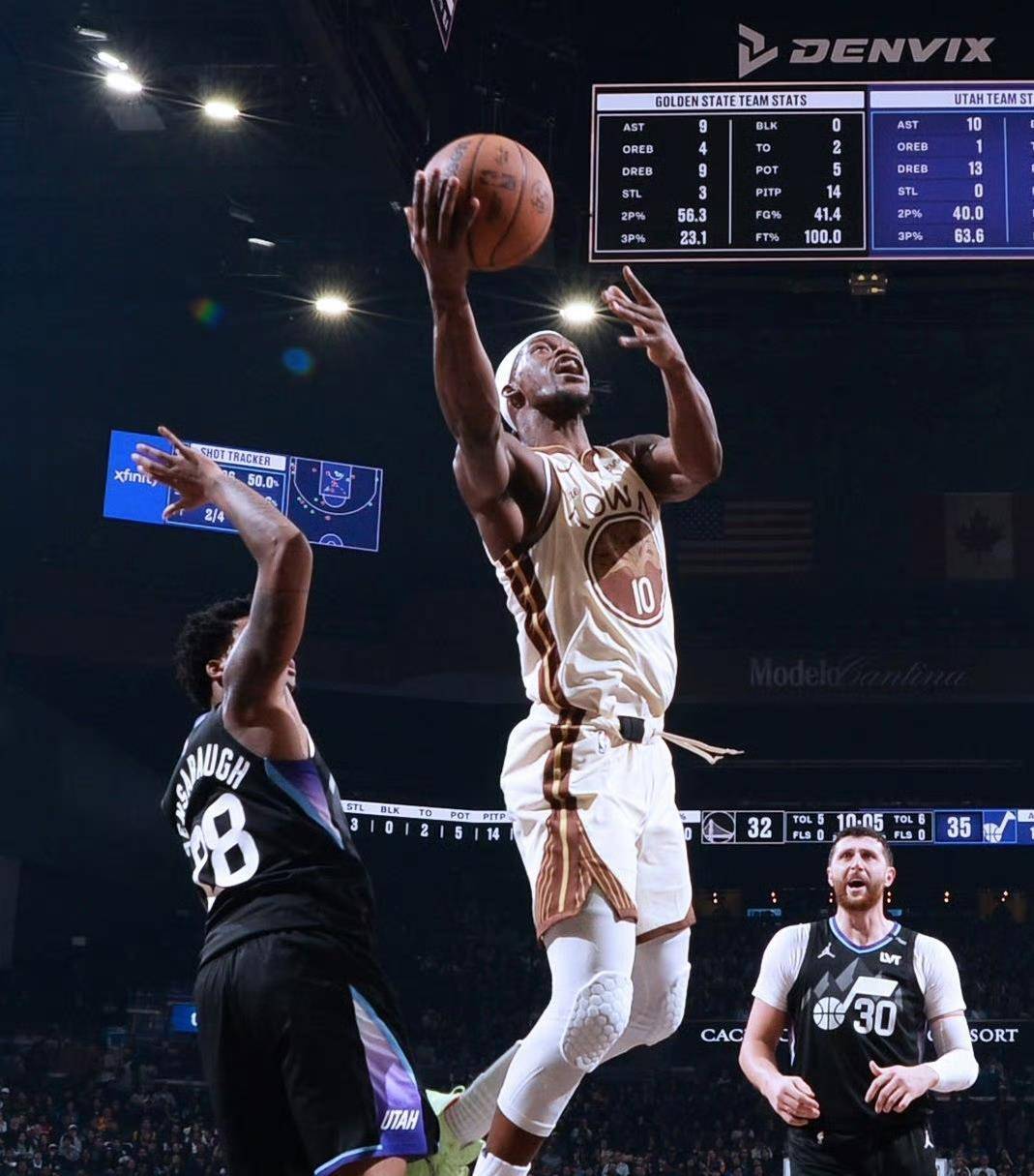 勇士队本场比赛的另外两大收获是巴特勒和小佩顿的表现。 巴特勒11投8中得到18分6篮板7助攻,得分效率极高且节点关键。 小佩顿担任首发效果显著,全场送出8次助攻,犹如球队的“润滑油”。 爵士队在上半场一度取得领先,但他们的稳定性着实糟糕,短暂的领先优势转瞬即逝。 爵士遭遇严重断电,局面急转直下,他们遇到巨大困难。 接下来的时间爵士没再看到反弹的希望,没有神奇手感,进攻端无法压制,防守更是比不赢。