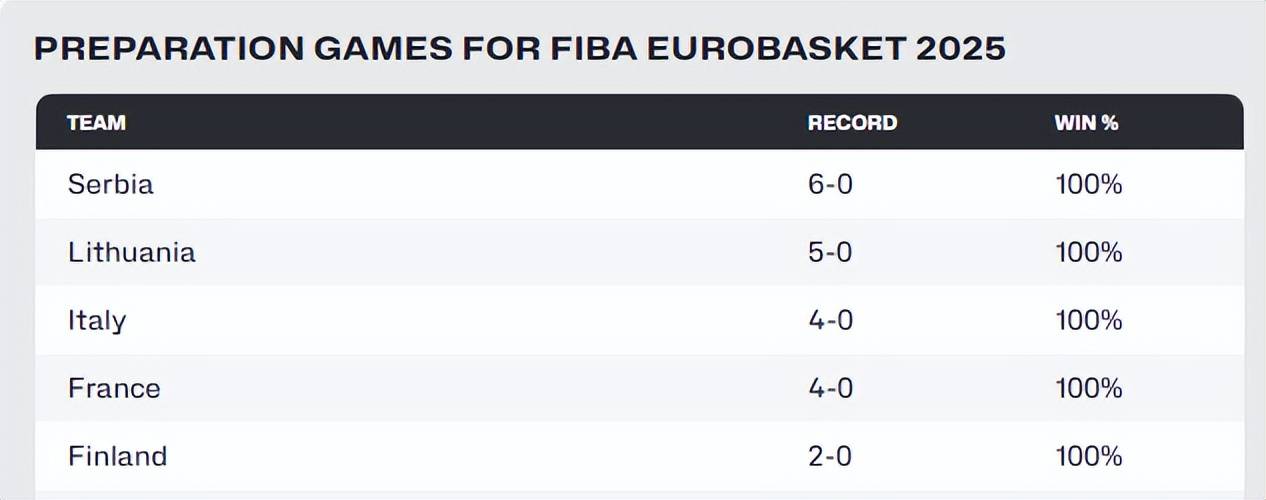 截至目前,仍有五支球队在欧锦赛热身赛上保持不败,他们是塞尔维亚(6胜0负)、立陶宛(5胜0负)、意大利(4胜0负)、法国(4胜0负)、芬兰(2胜0负)。返回搜狐,查看更多