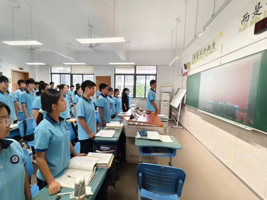 国歌声中,五星红旗冉冉升起。全体师生昂首肃立,目光坚定,立鸿鹄之志于心,践骐骥之行于世,把个人理想自觉融入国家发展伟业。