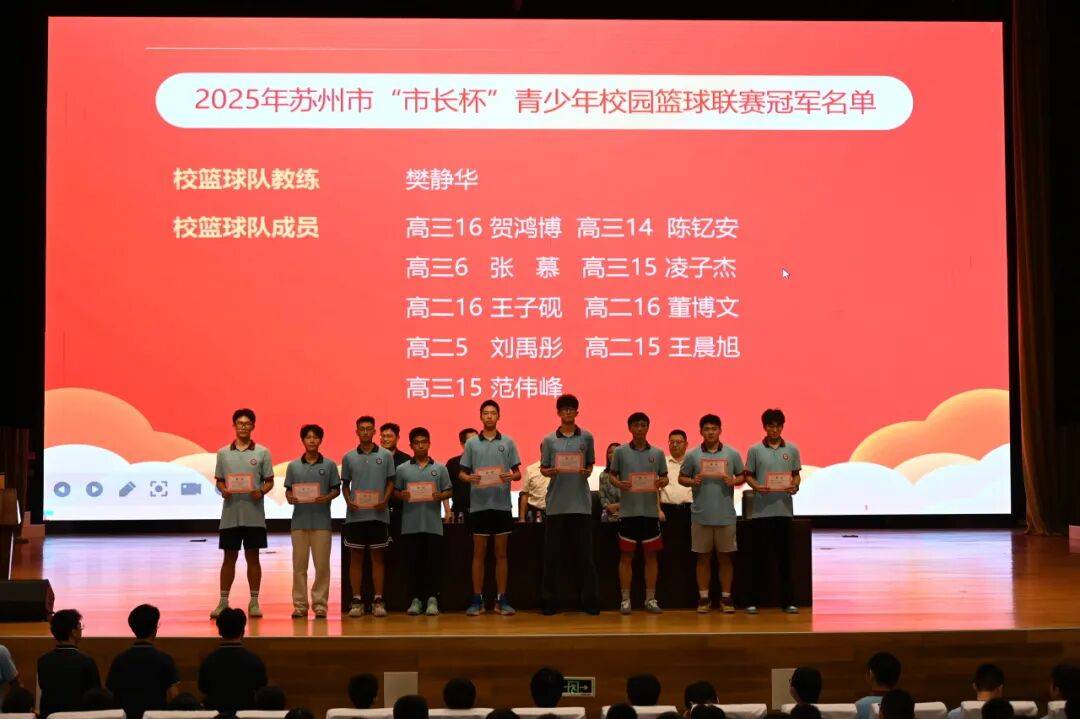陈忠平副校长宣读校2025年苏州市“市长杯”青少年校园篮球联赛校篮球队夺冠名单。
